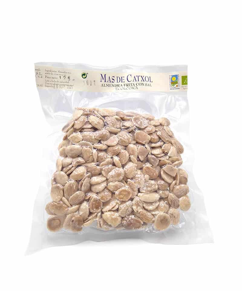 Almendra de la variedad marcona de cultivo ecológico frita con aceite de oliva ecológico y sal.